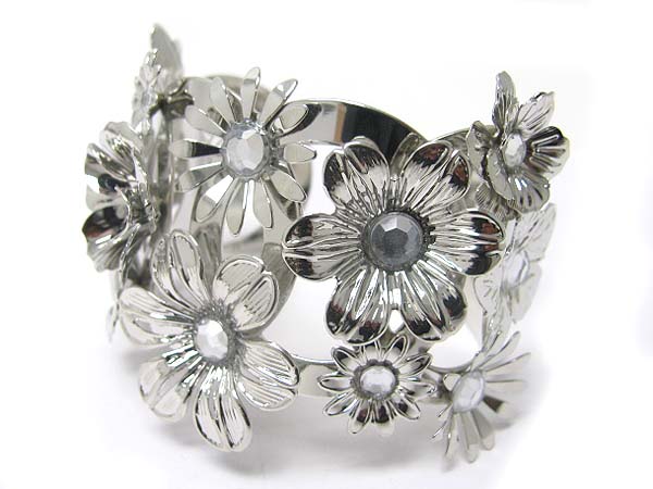 WHOLESALE MULTI METAL FLOWER DECO CUFF BANGLE 353355