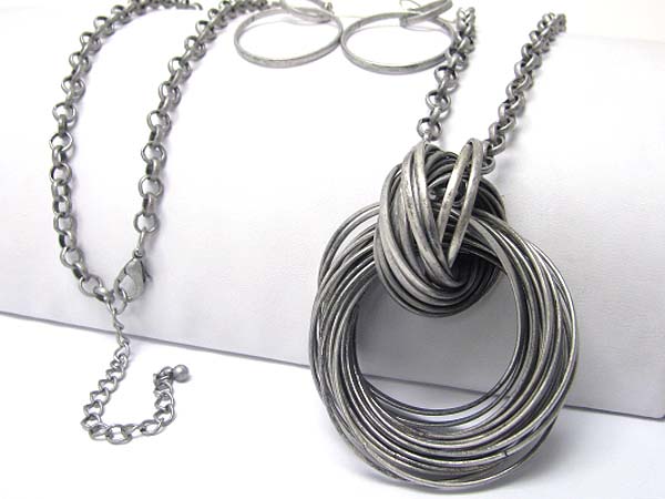 WHOLESALE MULTI METAL HOOP INTER LINK NECKLACE EARRING SET - HOOPS 353389