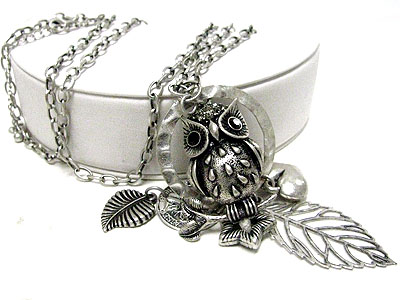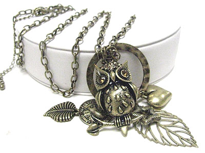 WHOLESALE CRYSTAL STUD OWL PENDANT AND MIXED CHARM DANGLE LONG NECKLACE 353417