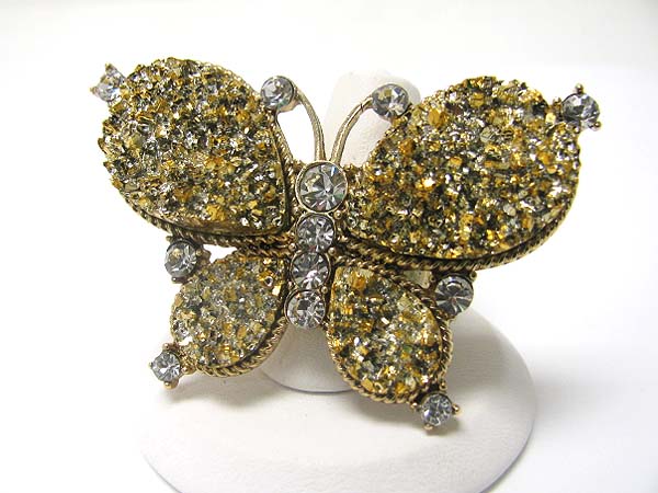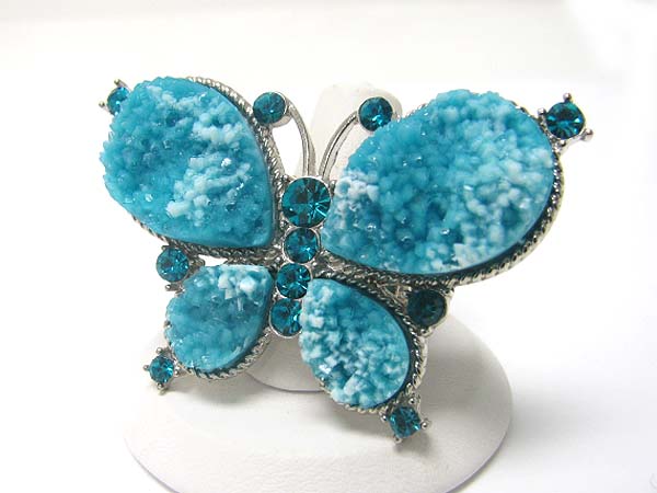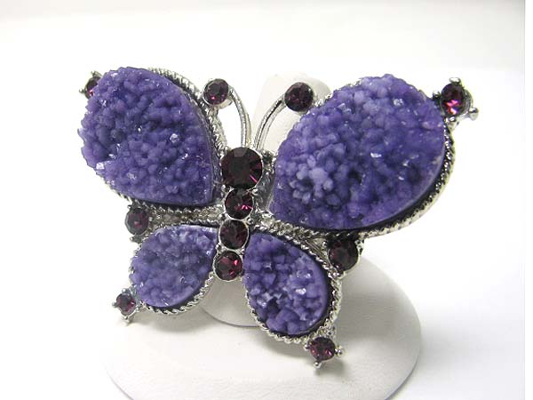 Crystal stud natural look rough face butterfly stretch ring