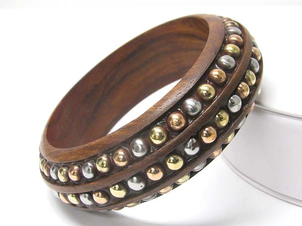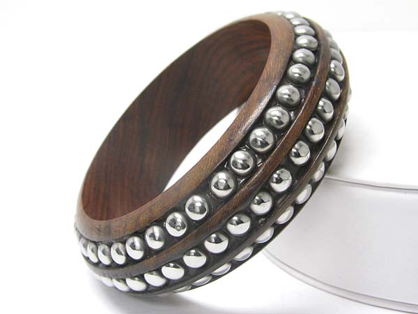 WHOLESALE METAL STUD WOOD BANGLE 353461