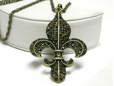 WHOLESALE CRYSTAL FLEUR DE LIS PENDANT LONG CHAIN NECKLACE 353476