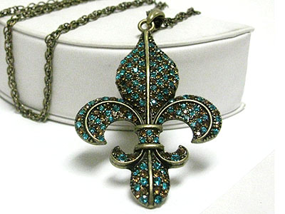 Crystal fleur de lis pendant long chain necklace