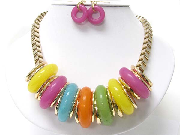 Multi acryl and metal ring and metal box chain necklace earrng set