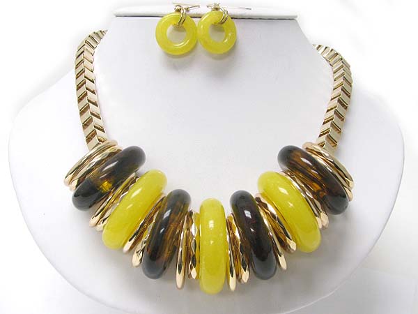 WHOLESALE MULTI ACRYL AND METAL RING AND METAL BOX CHAIN NECKLACE EARRNG SET 353558