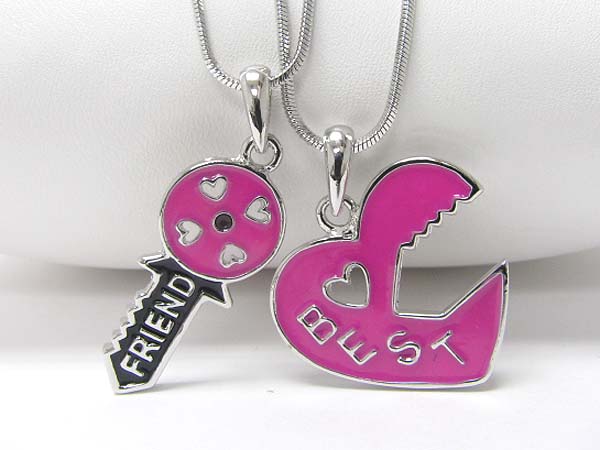 WHOLESALE MADE IN KOREA WHITEGOLD PLATING METAL EPOXY BEST FRIEND TWO PENDANTS NECKLACE 353602