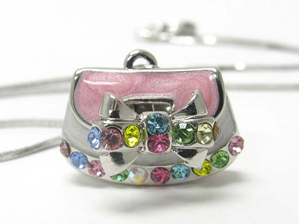 WHOLESALE MADE IN KOREA WHITEGOLD PLATING AND METAL EPOXY CRYSTAL STUD HANDBAG PENDANT NECKLACE 353623