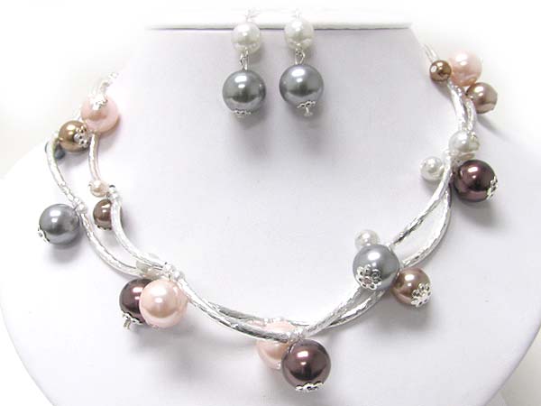 WHOLESALE DOUBLE LAYER PEARL BALL AND SNAKE CHAIN LINK NECKLACE EARRING SET 353637