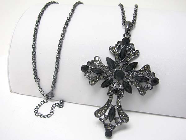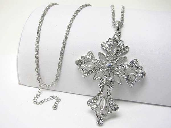 WHOLESALE CRYSTAL FLOWER CROSS PENDANT LONG NCKLACE 353669