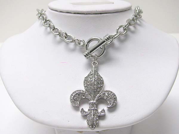 Crystal fleur de lis pendant toggle necklace