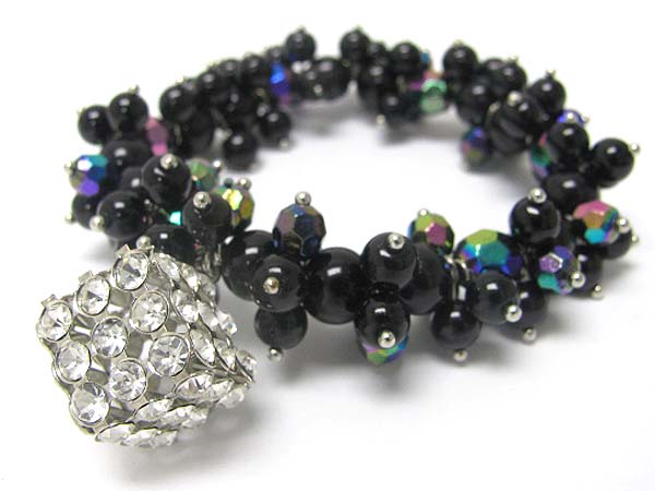 Crystal stud cube charm pearl beads cluster stretch bracelet
