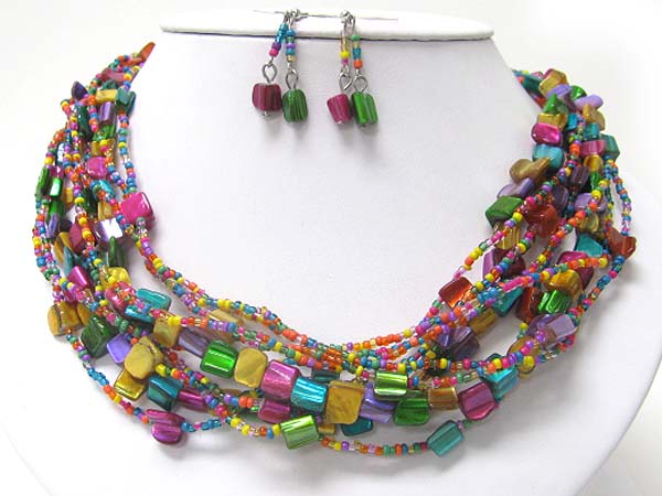 WHOLESALE MULTI STRAND SHELL ANS SEED BEADS NECKLACE EARRING SET 353718