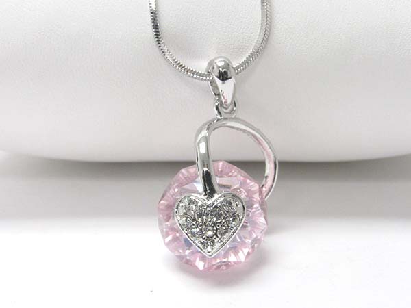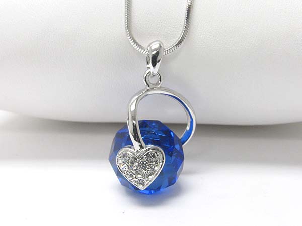 Made in korea whitegold plating heart and facet crystal ball pendant necklace