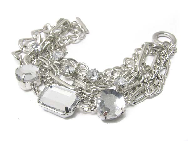 WHOLESALE CRYSTAL AND EPOXY STONE DANGLE MULTI LINE METAL CHAION BRACELET 353800