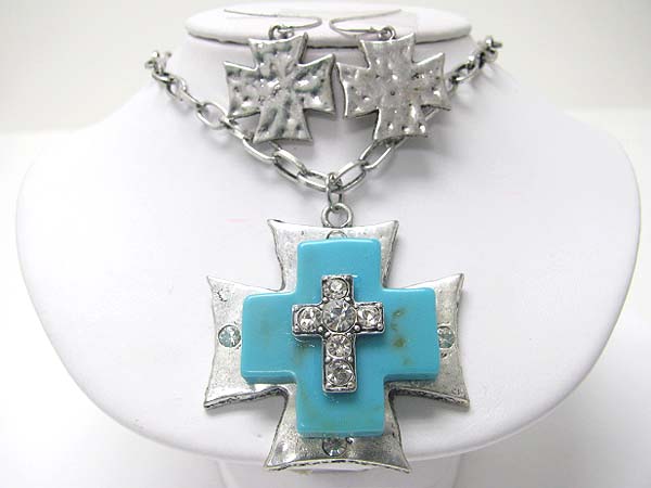 WHOLESALE MULTI LAYER CRYSTAL STUD CROSS PENDANT NECKLACE EARRING SET 353853