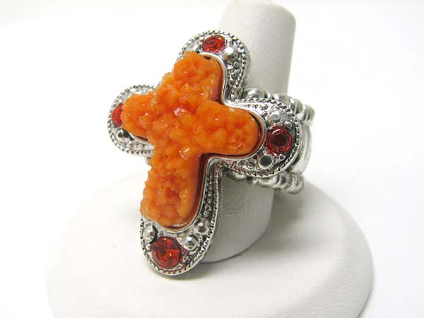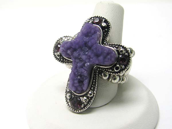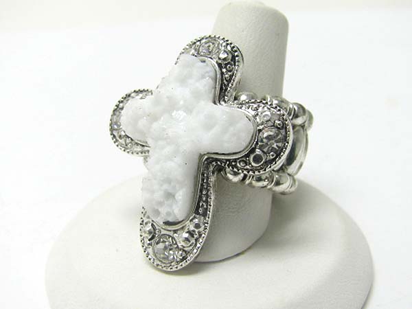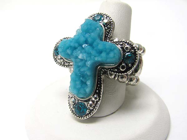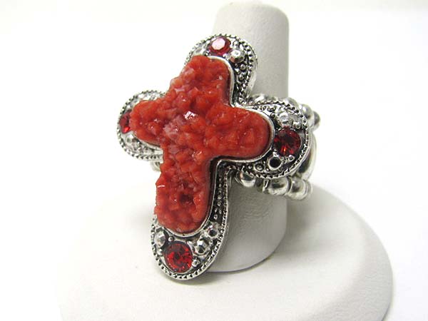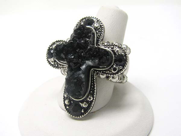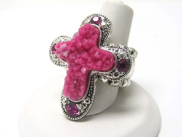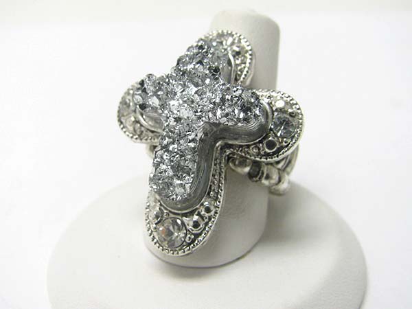 WHOLESALE CRYSTAL STUD NATURAL LOOK ROUGH FACE CROSS STRETCH RING 353860
