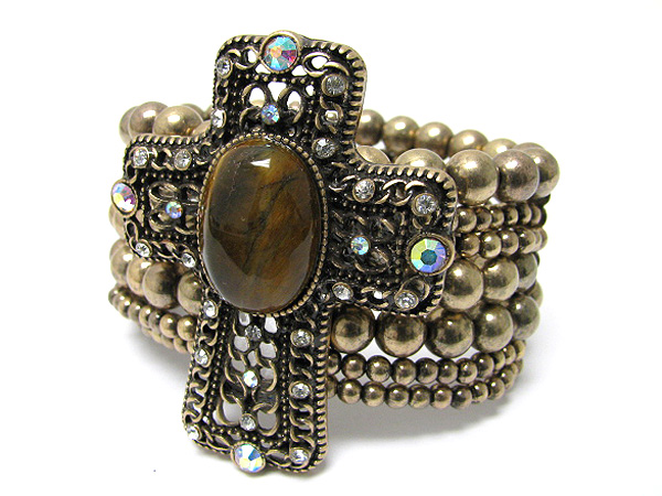 WHOLESALE TURQUOISE AND CRYSTAL STUD CROSS TOP METAL BEADS STRETCH BRACELET 353905