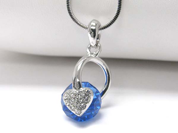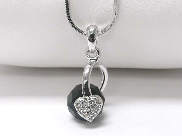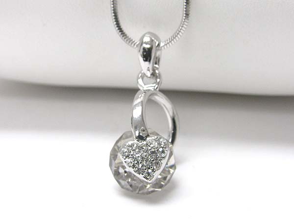 Made in korea whitegold plating heart and facet crystal ball pendant necklace