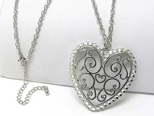 WHOLESALE CRYSTAL STUD LARGEFILIGREE HEART PENDANT LONG NECKLACE 353949