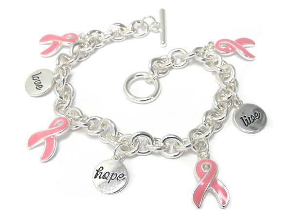 WHOLESALE PINK RIBBON EPOXY CHARM DANGLE BRACELET - BREAST CANCER AWARENESS 353979