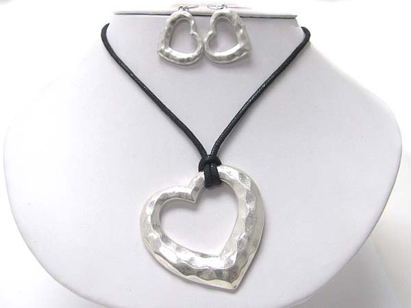 WHOLESALE HAMMERED METAL HEART PENDANT AND CORD NECKLACE EARRING SET 354126