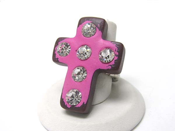 WHOLESALE CRYSTAL STUD PATINA CROSS STRETCH RING 354163