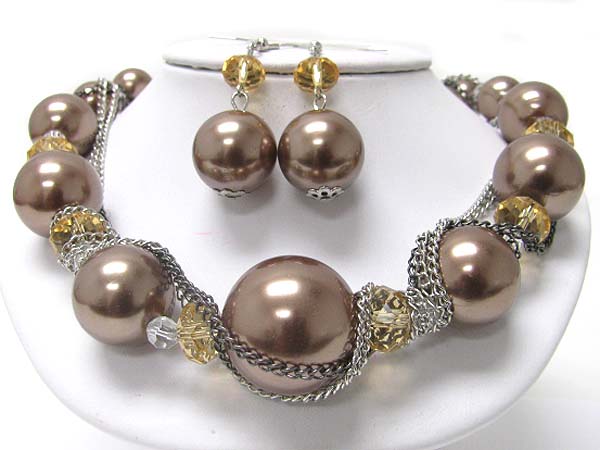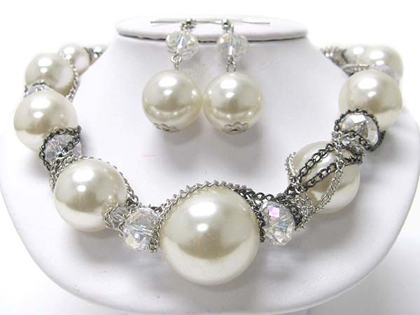 WHOLESALE PEARL BEADS AND FACET GLASS CHAIN TANGLE NECKLACE EARRING SET 354177
