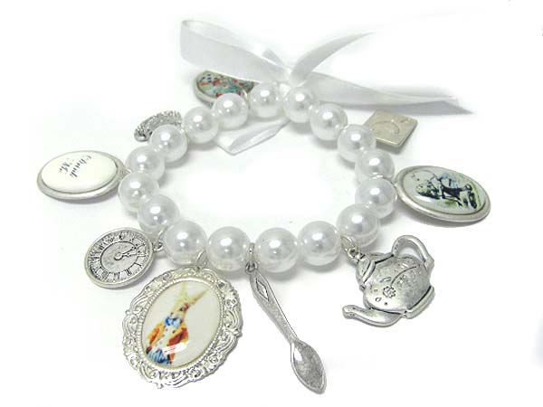 WHOLESALE ALICE IN WONDERLAND THEME CHARM DANGLE STRETCH BRACELET 354209