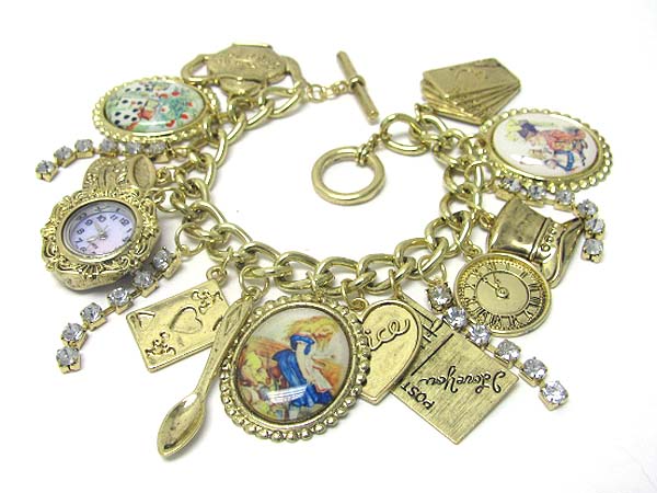 Alice in wonderland theme charm dangle watch bracelet
