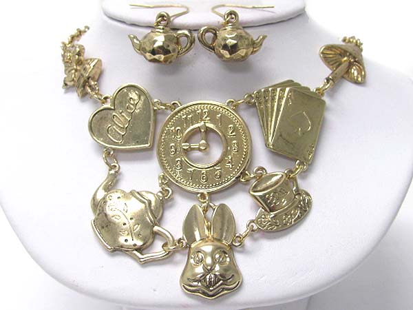 WHOLESALE ALICE IN WONDERLAND THEME CHARM NECKLACE EARRING SET 354306