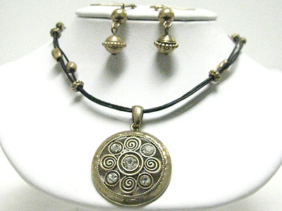 WHOLESALE ANTIQUE LOOK METAL TEXTURED ROUND PENDANT NECKLACE EARRING SET 354482