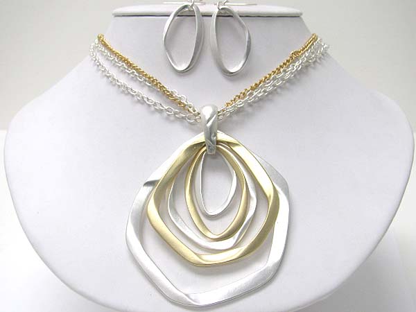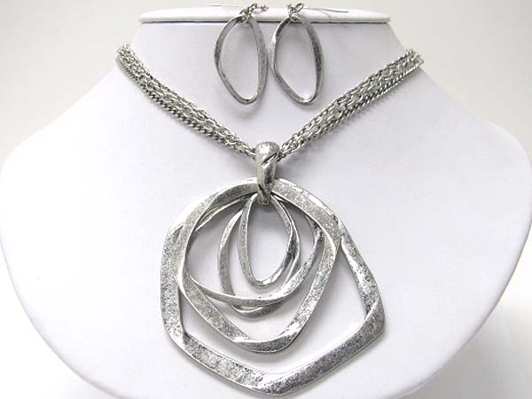 WHOLESALE ANTIQUE LOOK MULTI METAL HOOP DANGLE NECKLACE EARRING SET - HOOPS 354487