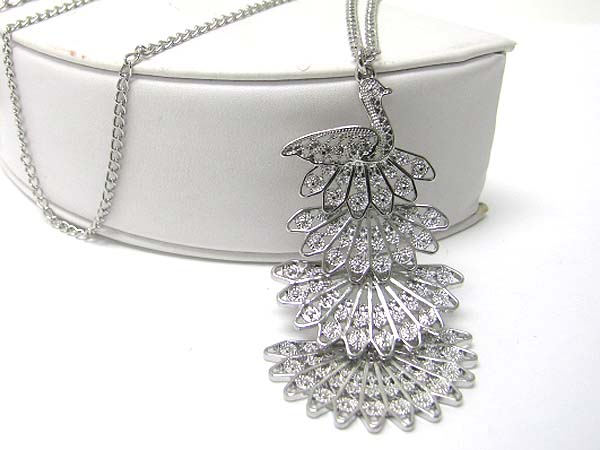 Multi layer crystal stud peacock pendant long necklace