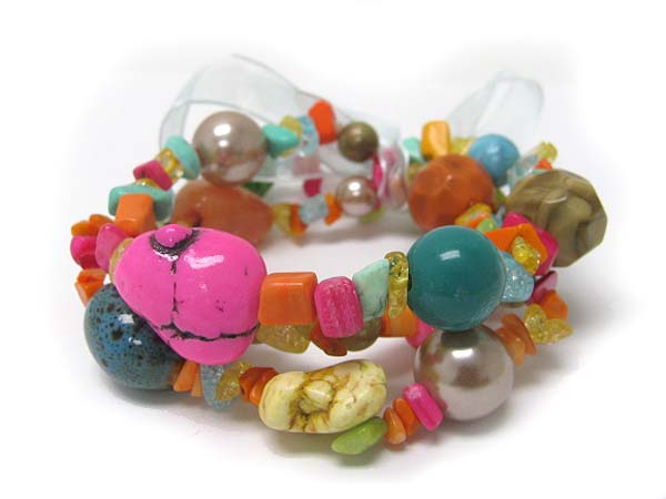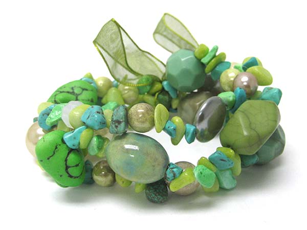 WHOLESALE MULTI ROW NATURAL CHIP STONE AND BEADS STRETCH BRACELET 354667