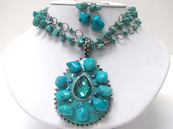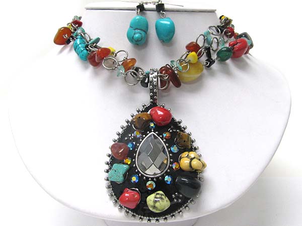 WHOLESALE NATURAL STONE AND CRYSTAL MOSAIC TEAR PENDANT NECKLACE ERARRING SET 354726