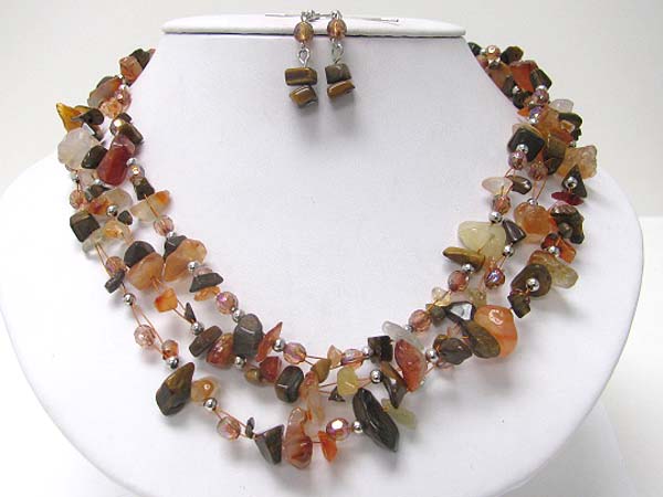 WHOLESALE MULTI STRAND TURQUOISE AND NATURAL CHIP STONE NECKLACE EARRING SET 354836