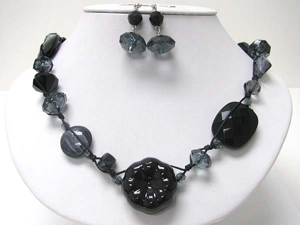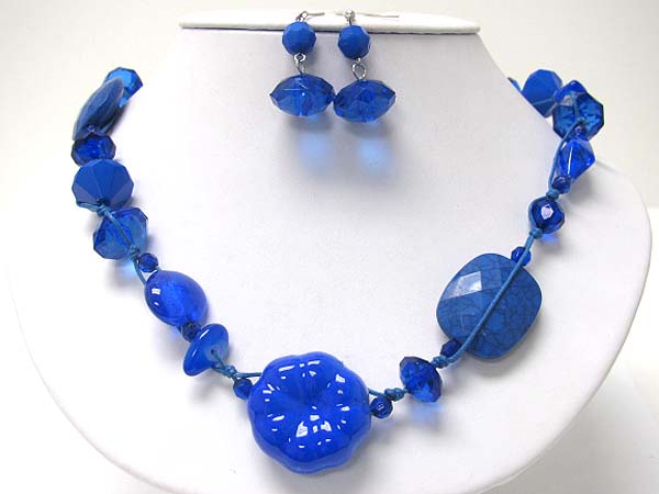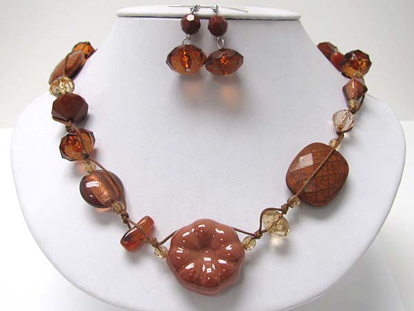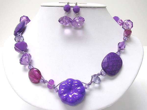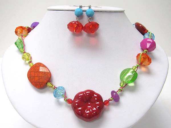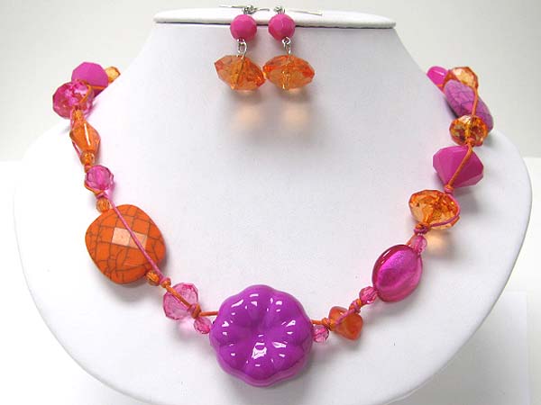 WHOLESALE MIXED GLASS BEADS AND DISK LINK LONG NECKLACE EARRING SET 354915