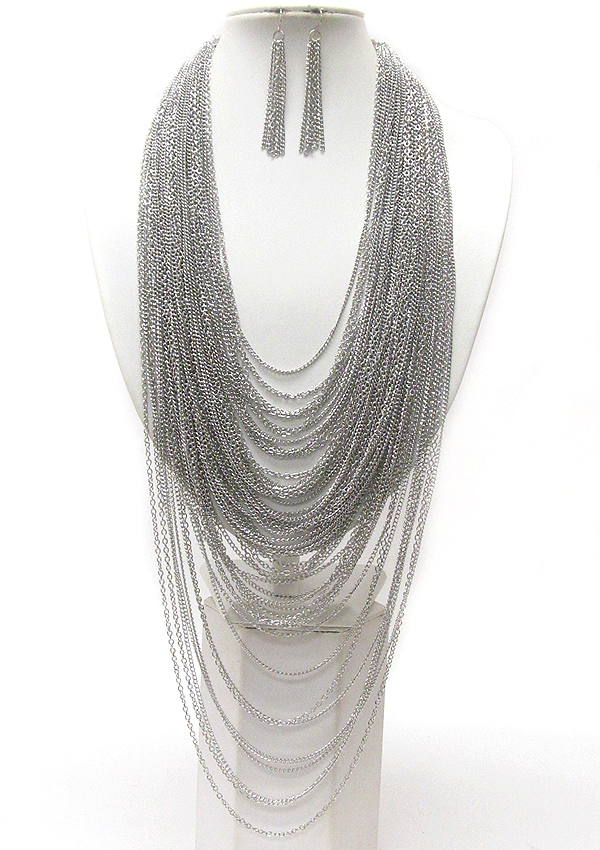 WHOLESALE MULTI STRAND THINE METAL CHAIN LONG NECKLACE EARRING SET 354963
