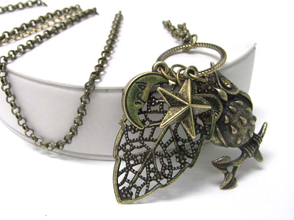 WHOLESALE OWL AND LEAF MOON STAR DANGLE LONG NECKLACE 354996