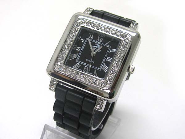 WHOLESALE CRYSTAL STUD SQUARE FACE COLOR RUBBER BAND FASHION WATCH 355046