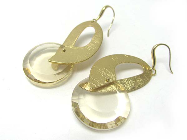 WHOLESALE CRYSTAL CUT ROUND GLASS DISK AND SCRATCH METAL EARRING - BRASS METAL 355193