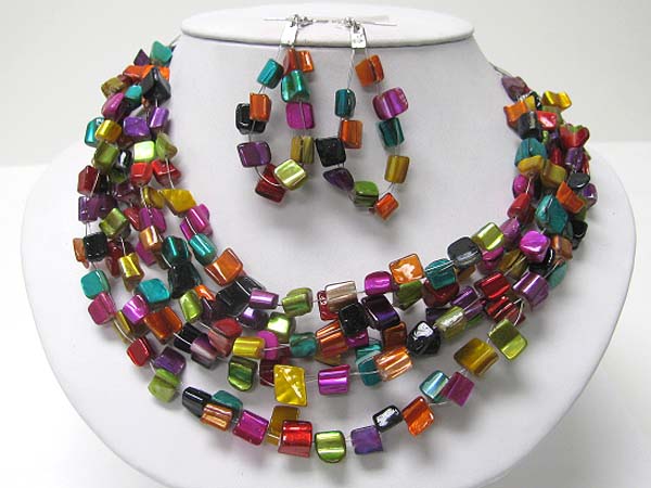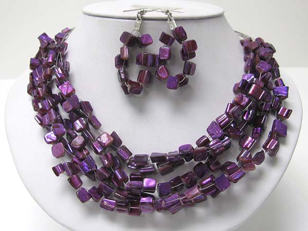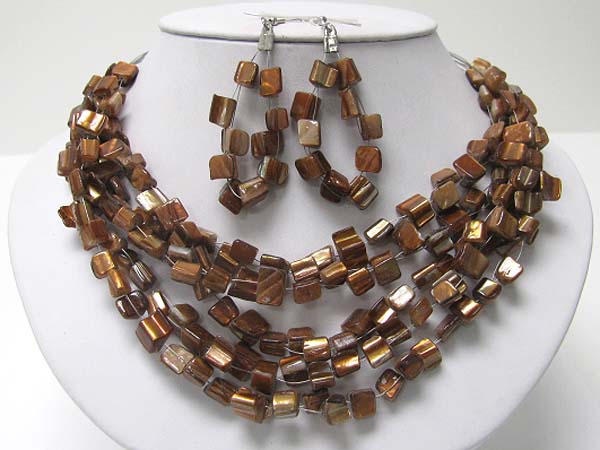 Naturasl sea shell cube link necklace earring set