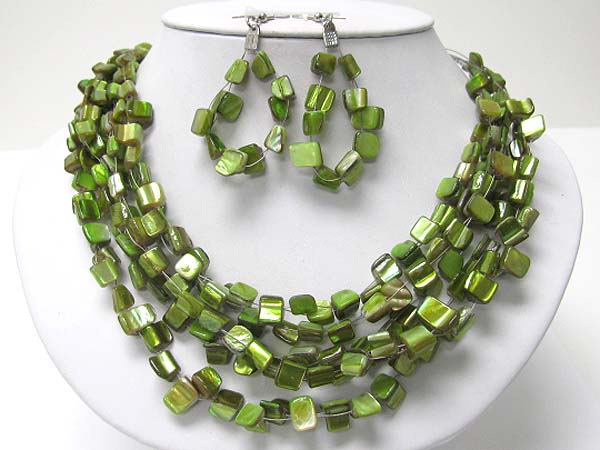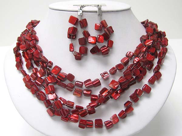 WHOLESALE NATURASL SEA SHELL CUBE LINK NECKLACE EARRING SET 355235