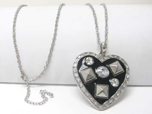 Large crystal stud enamel heart charm dangle long neckalce earring set
