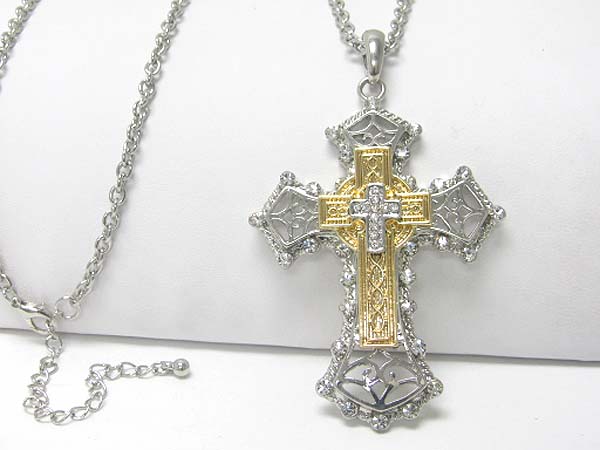 WHOLESALE LARGE CRYSTAL STUD CROSS CHARM DANGLE LONG NECKALCE EARRING SET 355251