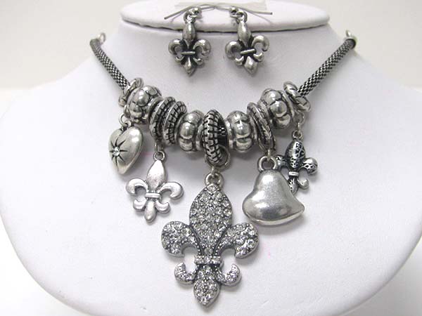 WHOLESALE CRYSTAL FLEUR DEL LIS AND HEART DANGLE NECKALCE EARRING SET 355379