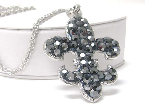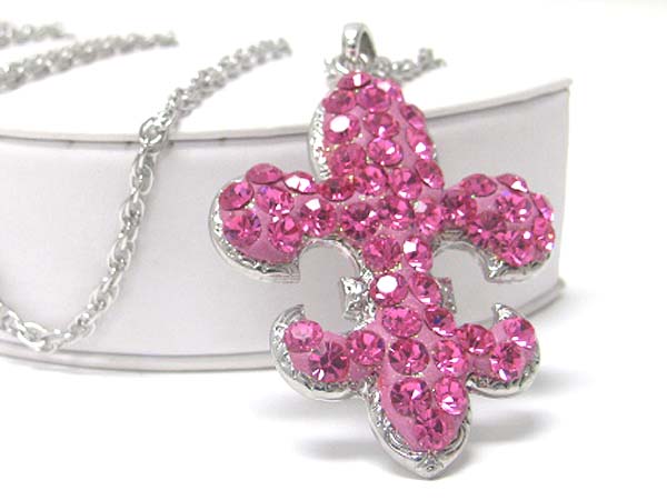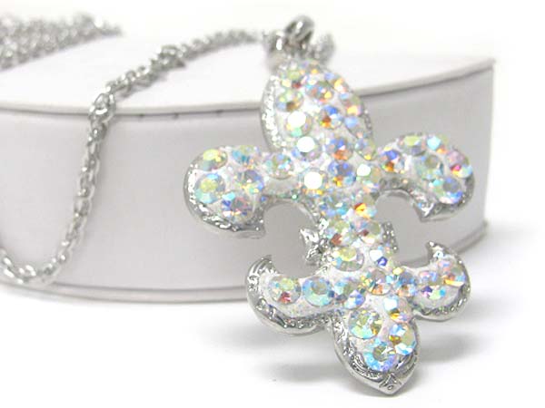 WHOLESALE CRYSTAL STUD LARGE FLEUR DE LIS PENDANT LONG CHAIN NECKLACE 355408