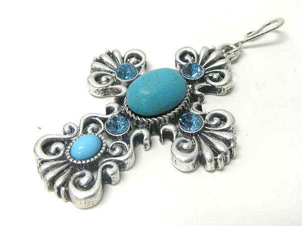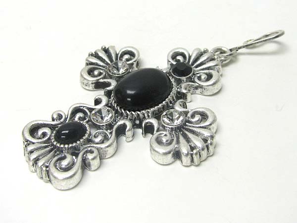 WHOLESALE CRYSTAL AND NATURAL STONE STUD CROSS PENDANT 355484