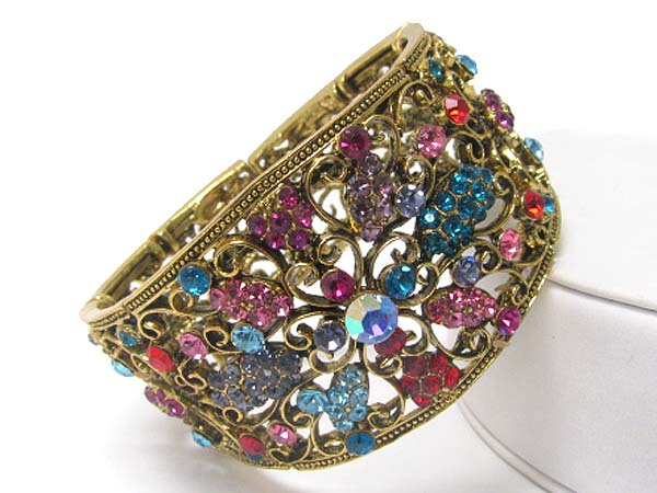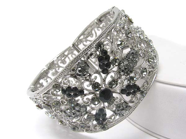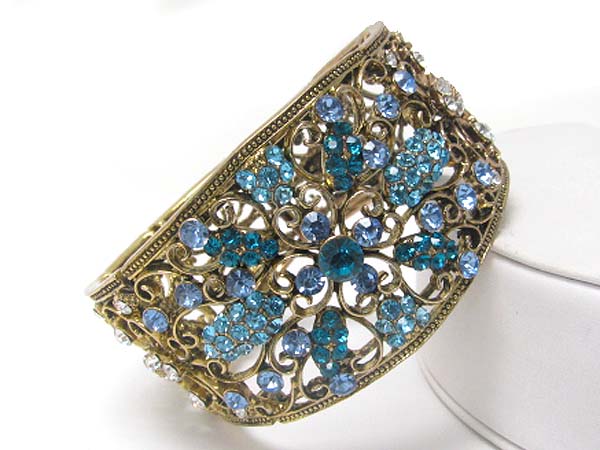 Crystal deco filigree metal wide metal hinge bangle
