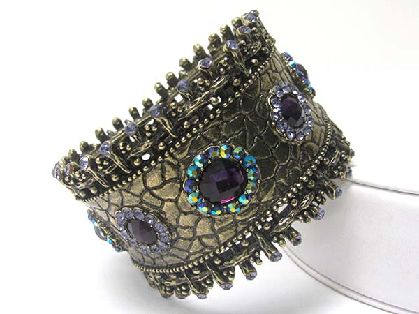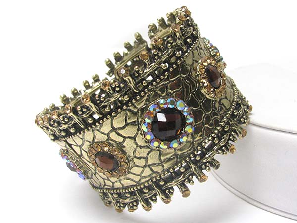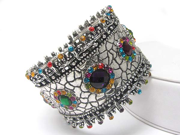 Crystal edge textured metal hinge bangle